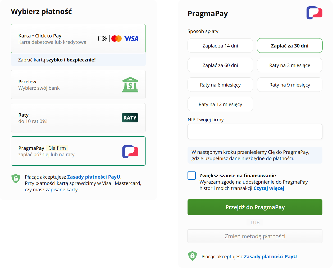 Odroczona płatność oraz elastyczne raty dostępne dla Twojej firmy.