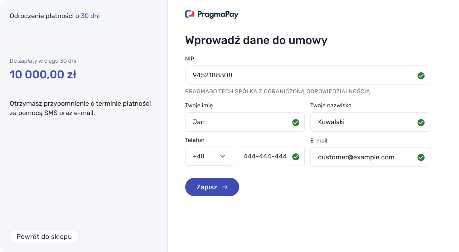Przejrzysty koszt usługi – bez gwiazdek i drobnych druczków. Odroczenie o 14 i 30 dni jest darmowe!